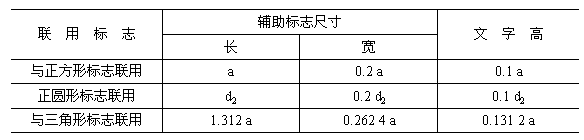 E2與其它標志聯用的文字輔助標志尺寸見表E2。表中符號所表示的意義參見GB13495—92第5章。