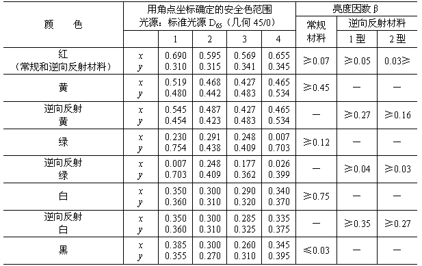b.標志的色度坐標及亮度因數超出其適用范圍(參見附錄C中表C1);