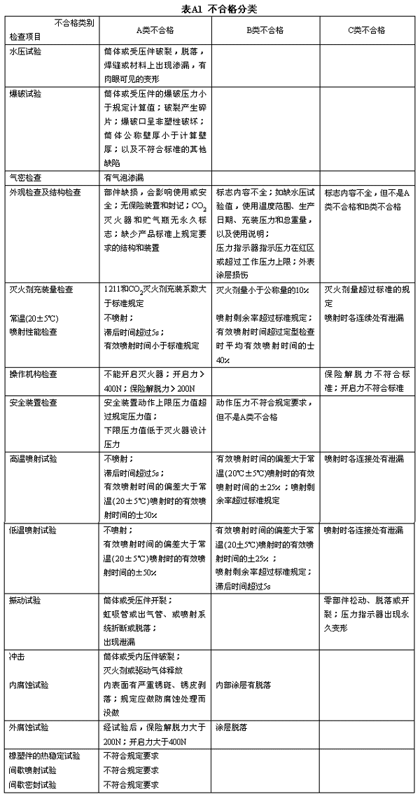 注:滅火器的不合格分類及判據見附錄A(補充件)。