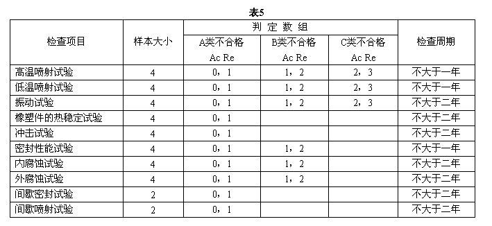 周期檢查的項目、樣本大小、判定數組和檢查周期應符合表5規定。
