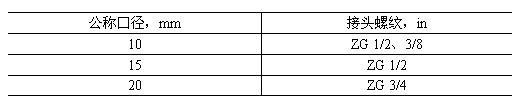 表1 灑水噴頭的公稱口徑和接頭螺紋