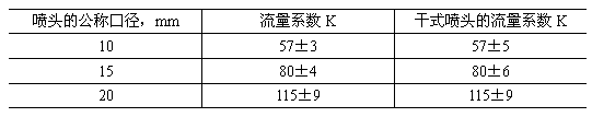 4.2.2 按5.3條方法試驗(yàn),所確定的噴頭流量特性系數(shù)K值應(yīng)符合表3的要求。