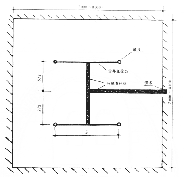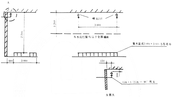 噴頭靠墻安裝,分為水平和直立兩種形式。噴頭的灑水形狀為半拋物體形,它將水直接灑向保護(hù)區(qū)域。