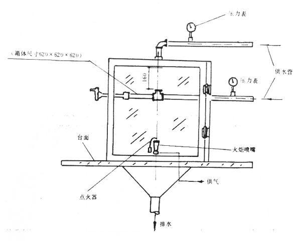 5.23.1.6 火炬由噴霧嘴將90號(hào)石油醚噴出點(diǎn)燃。90號(hào)石油醚的霧化速率為0.06 L/s。石油醚的貯量應(yīng)能滿足連續(xù)試驗(yàn)30 min的需要,其溫度應(yīng)為5~25℃。