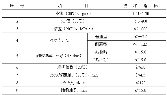 抗溶性泡沫滅火劑的性能應符合表1中所規定的技術要求。