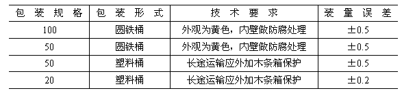 抗溶泡沫滅火劑用鐵桶或聚乙烯塑料桶包裝,包裝應符合表2所列要求。