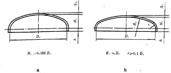 A2.4 封頭的最小壁厚應不小于筒體的計算最小壁厚(與筒體整體拉伸的封頭除外)。封頭的形狀應為橢圓形、碟形或半球形,并應滿足下列條件: