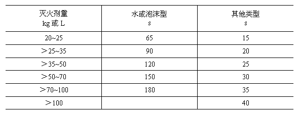 推車式滅火器在20±5℃的噴射性能應符合第3.1.1~3.1.4的規定。