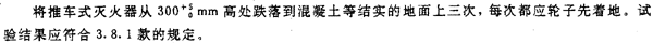 3.11.2 推車式滅火器的噴射槍應能經受4.12的跌落試驗,試驗后,噴射槍應能正常使用。