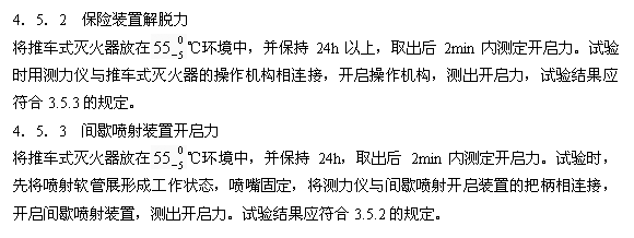 對經外部腐蝕試驗后的推車式滅火器開啟部件和間歇噴射裝置部件應按4.5進行試驗,試驗結果應符合3.6.1的規定。