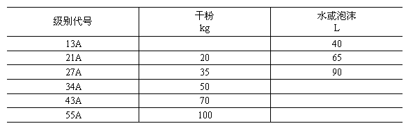 推車式滅火器撲滅A類火災的能力,不得小于表2規定的級別。
