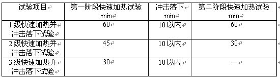 7.4.1快速加熱并沖擊落下試驗各階段所需時間見表3。