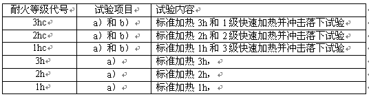 與試件的耐火等級對應的試驗項目與試驗內容見表2。