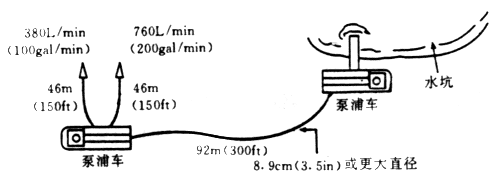 6.3.1從消火栓或水源處正、反向鋪設(shè)供水線至泵浦車的距離為92m(300ft)。當(dāng)使用大直徑水帶時(shí),應(yīng)允許使用單線。
