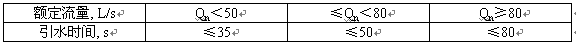 泵在開式試驗臺上進行引水時間試驗時,應接上帶有過濾器的標準吸水管,其長度應符合6.5.1的規定。車用泵的吸深為7m,泵組的吸深為6m,試驗次數不應少于三次。試驗結果均應符合5.7.2的規定。