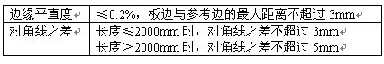 表4邊緣平直度和對角線之差允許值
