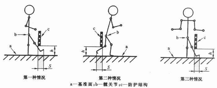 阻止自由進(jìn)入的距離與防護(hù)結(jié)構(gòu)的高度有關(guān),并且用限制下肢自由運(yùn)動的方法減小人員的風(fēng)險。