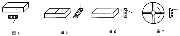 這個規則適用于直線運動部件的控制(圖4~圖6)以及圓周運動部件的控制。在后一種情況,只考慮離按鈕線最近的被控制部件圓周部分的運動總方向(圖7)。