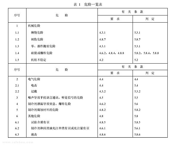 本標準不包括機組可能產生的所有危險。
