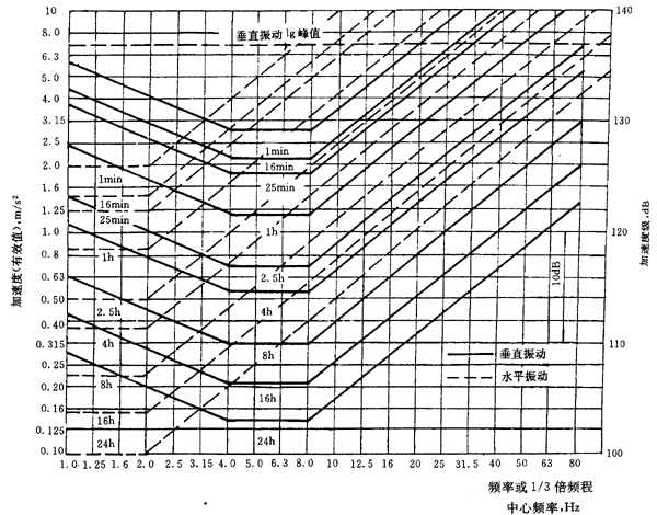 4.22 保證操作人員舒適愉快感的“舒適界限”的振動參數(shù),須比“工效界限”加速度級低10dB。