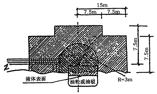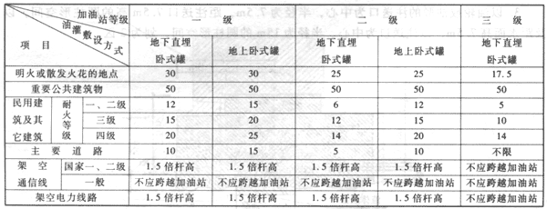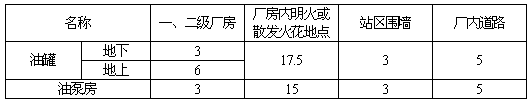 注:①表中油罐,系指儲存甲、乙類油品的立式固定頂鋼油罐。對于內(nèi)浮頂罐、儲存丙類油品的立式固定頂罐、容量大于50m