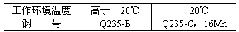 3.3.2 金屬結構主要受力構件的材料性能應不低于表1的規定。鋼號Q235-B,Q235-C應符合GB 700的規定;16Mn應符合GB 1591的規定。