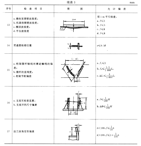 3.4.1 結構件制造的允許偏差應符合表3的規定。