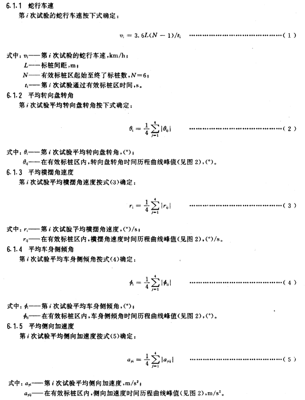 5.4 試驗汽車以近似基準車速二分之一的穩定車速直線行駛,在進入試驗區段之前,記錄各測量變量的零線,然后蛇行通過試驗路段,同時記錄各測量變量的時間歷程曲線及通過有效標樁區的時間。