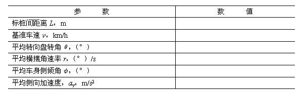 6.2.6 將圖3、圖4、圖5、圖6中基準車速下的平均橫擺角速度、平均轉向盤轉角、平均車身側傾角及平均側向加速度的數值填入表4中。