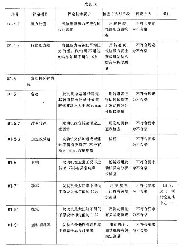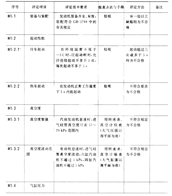 5.5 汽車發動機大修質量分級應符合下表規定。