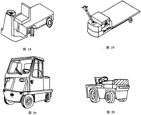 車(chē)輛后端裝有牽引連接裝置,用來(lái)在地面上牽引其他車(chē)輛的工業(yè)車(chē)輛稱為牽引車(chē)(圖2a);車(chē)輛前端裝有緩沖推頂板,用來(lái)在地面上作推頂其他車(chē)輛的工業(yè)車(chē)輛稱為推頂車(chē)(圖2b)。
