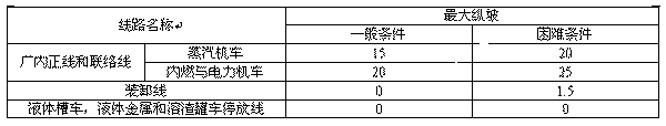2.1.7 廠內鐵路線路最小曲線半徑見表1;最大縱向坡度見表2。
