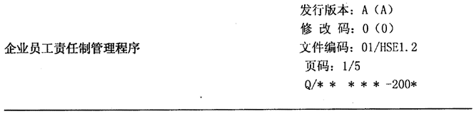 4.6.1 各崗位員工責任制應形成文件并學習掌握,由主管部門填寫“企業員工責任制記錄”(01/HSE1.2-01),報所在單位勞資部門備案。