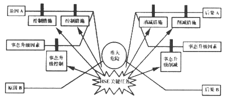 經過風險評價,安全工程師負責審核評價結果,組織召開由單位主管和相關HSE工作人員參加的風險控制會議,針對導致風險的原因、風險可能產生的后果以及事態升級因素確定風險控制和削減措施,分配HSE關鍵任務到各崗位(見圖1),并制定實施計劃,落實資金、負責人、實施要求和完成時間等,廠級健康安全環保部門負責監督檢查直至風險因素徹底消除,以預防事故發生,有效保護人員、財產和環境。