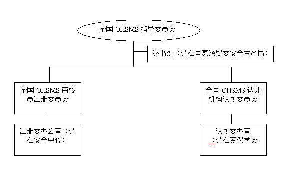 1999年10月,國家經貿委頒布了我國的職業安全衛生管理體系試行標準并發出了開展職業安全衛生管理體系審核認證工作的通知。2000年8月國家經貿委組成我國OHSMS的管理組織機構,全國OHSMS指導委員會和它下屬的全國OHSMS國家注冊審核員注冊委員會和全國OHSMS認證機構認可委員會,并制定了相應的符合國際慣例的工作文件,為今后我國OHSMS的推進發展奠定了堅實基礎。