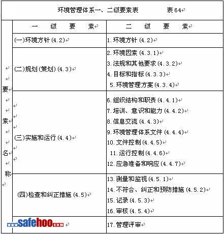 環(huán)境管理體系一、二級(jí)要素表