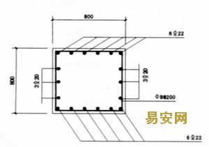 4.1.3支撐梁斷面采用700×800、800×800,梁底標高-5.05m,梁頂標高-4.250m,配筋為12ф22+6ф20,
