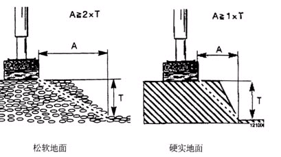 ??? 9、支腿必須支承在水平面的地面。支腿不能支承在空穴及坑、坡上。支腿底部應與路面邊緣保持一定的000安全距離,如圖1所示: