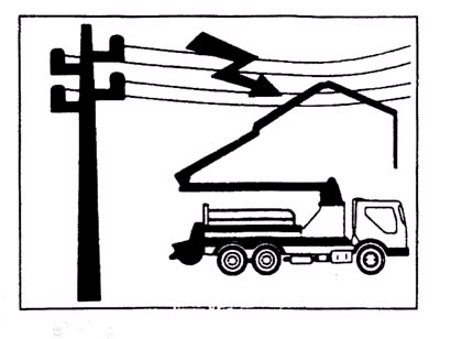 ??? 16.在有電線的地方必須小心操作,注意與電線保持適當(dāng)距離,否則在泵車附近或與它連接物(遙控裝置、末端軟管等)上作業(yè)的所有人員都有致命的危險(xiǎn)。如圖5所示: