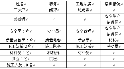 現場管理組織機構和勞力計劃: