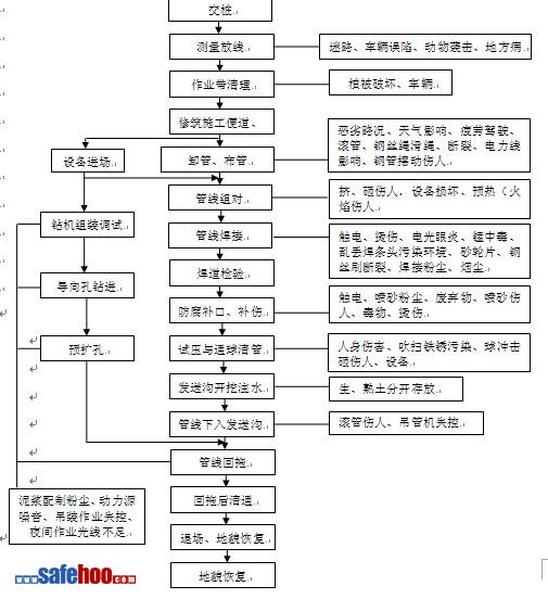 2.1定向鉆穿越施工工藝流程圖和危害、危險點源