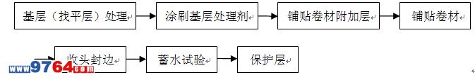 附加層是指在易滲漏及易破損部位設(shè)置的卷材,施工防水層前,應(yīng)在女兒墻、水落口、管根、天溝、檐口、陰陽角等細(xì)部先做防水附加層。