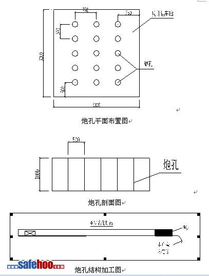 2、炸藥使用煤礦許用三級乳化炸藥,雷管使用非電毫秒雷管。裝藥結構為正向裝藥結構。采用黃泥封口,封泥長度不少于O.5m。