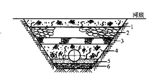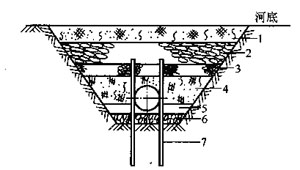 圍 堰 過河法 | 施工要求條件較高;鋼管、鑄鐵 管、預(自)應力鋼筋混凝土管過 河均可 | 需要考慮轉堰被洪水沖擊問 題;工作量大 | 河面不甚至寬,水流不急且不通航的 條件下 | |