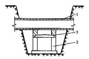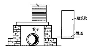 混合結(jié)構(gòu)或鋼筋混凝土矩形管渠與其上方鋼管道或鑄鐵管道交又,當(dāng)頂板至其上方管道底部的凈空在70mm及以上時,可在側(cè)墻上砌筑磚墩支撐管道,見圖12-8。