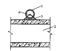當(dāng)頂板至其上方管道底部的凈空小于70mm時,可在頂板與管道之間采用低強度等級的水泥砂漿或細(xì)石混凝土填實,其載荷不應(yīng)超過頂板的允許承載力,且其支撐角不應(yīng)小于90°,見圖12-9。