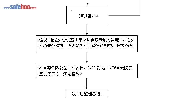 1、認真審核施工單位的專項施工方案:該事項為“超過一定規模危險性較大的分部分項工程”重點審查施工單位的審批手續是否符合要求,方案內容是否有針對性,是否齊全;安全體系是否完整,措施是否符合施工要求。是否組織專家論證,專家組意見是否完全采納。