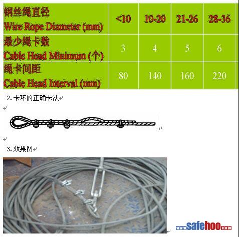 1.滿足下圖中有關鋼絲繩對應卡環的卡數、卡距的要求