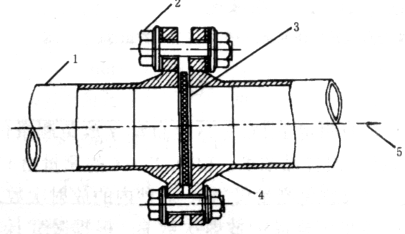 ???? 注:1——?jiǎng)踊鸷附庸芫€;2——絕緣螺栓;3——絕緣盲板;4——法蘭;5——接容器