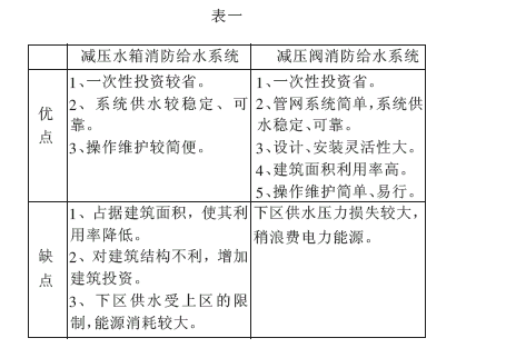 ??? 減壓水箱、減壓閥消防給水系統各自優缺點歸納如表一所示。